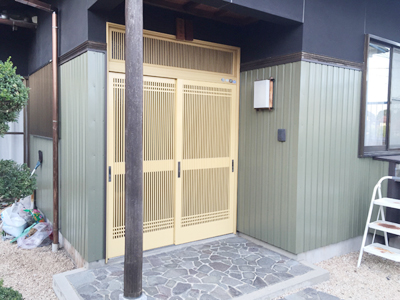 玄関引き戸塗装 木壁張替え工事 M様邸 屋根・外壁施工事例外壁塗装・屋根塗装・雨漏り・リフォームの事なら四日市市・名古屋市のアイケン愛知・三重。
