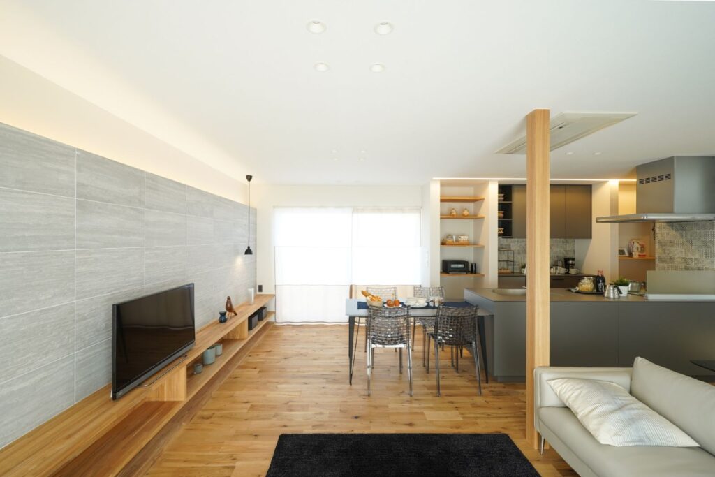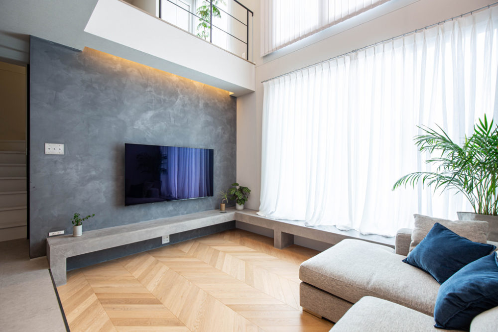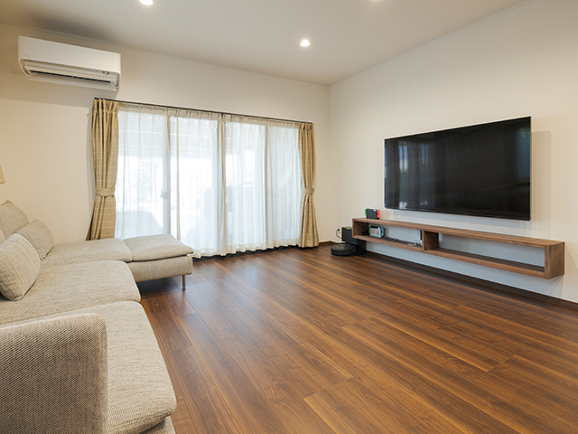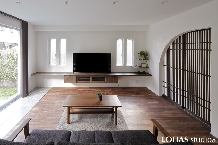 造作フロートテレビボードでつくる、広くて上質なリビング空間名古屋のオーダー家具とインテリアコーディネートなら LUFT 愛知県。