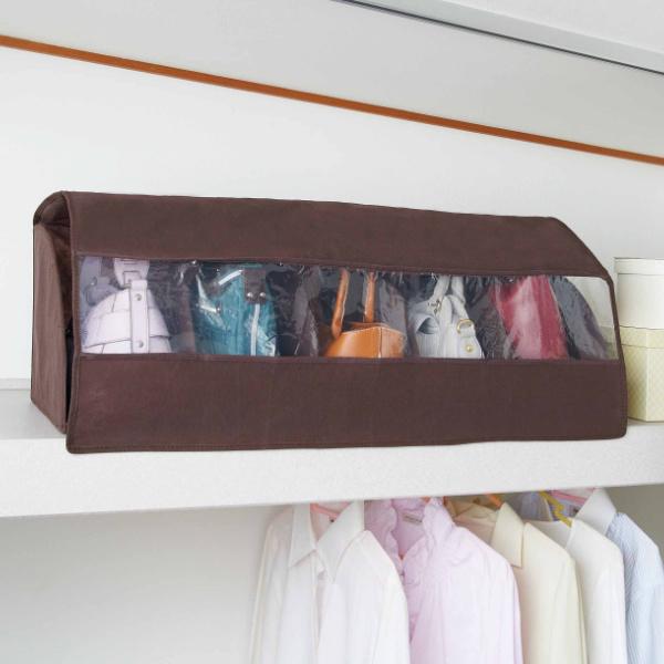 バッグ収納 スタンド ケース 袋 仕分け 透明窓カバー 棚上仕分けバッグ収納 ホコリから守る かばん 片付ける クローゼットの上 棚の上 型崩れしない整理 通気性 不燃布 一人暮らし 鞄の保管 おうち生活 コジットアイデア.com コジット公式ストア。