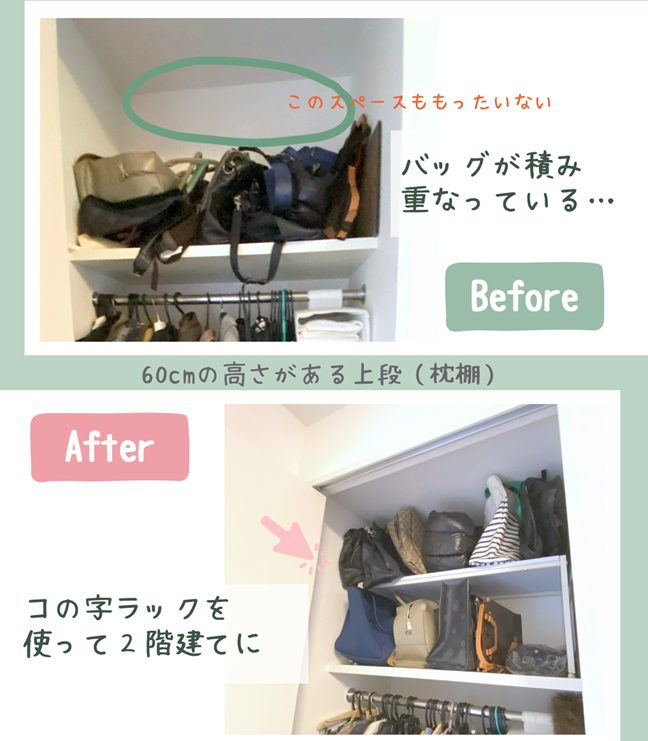 カバン収納におすすめグッズとクローゼット枕棚の使い方アイデア ノウハウコラムおうちデトックス。