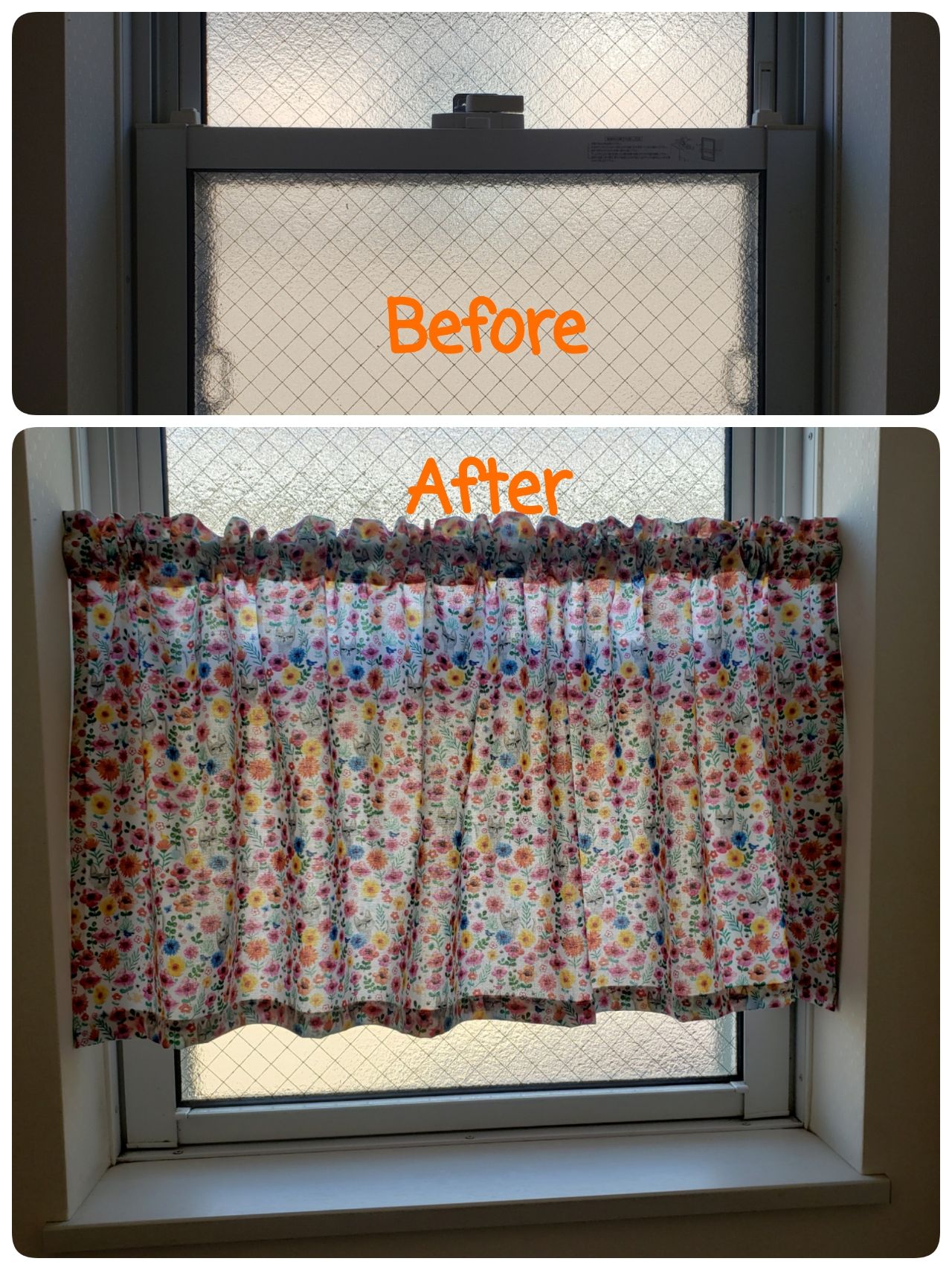 西日が眩しい我が家のトイレ💦 新しいカフェカーテンを端切れでダダっと作りました 少しは暑さが和らぐかな?😅 こんなカフェカーテンの作り方はYouTubeで需要があるかしら?パッチワークハーモニーパッチワーク折り伏せ縫いポジャギ風カフェカーテン裁縫。