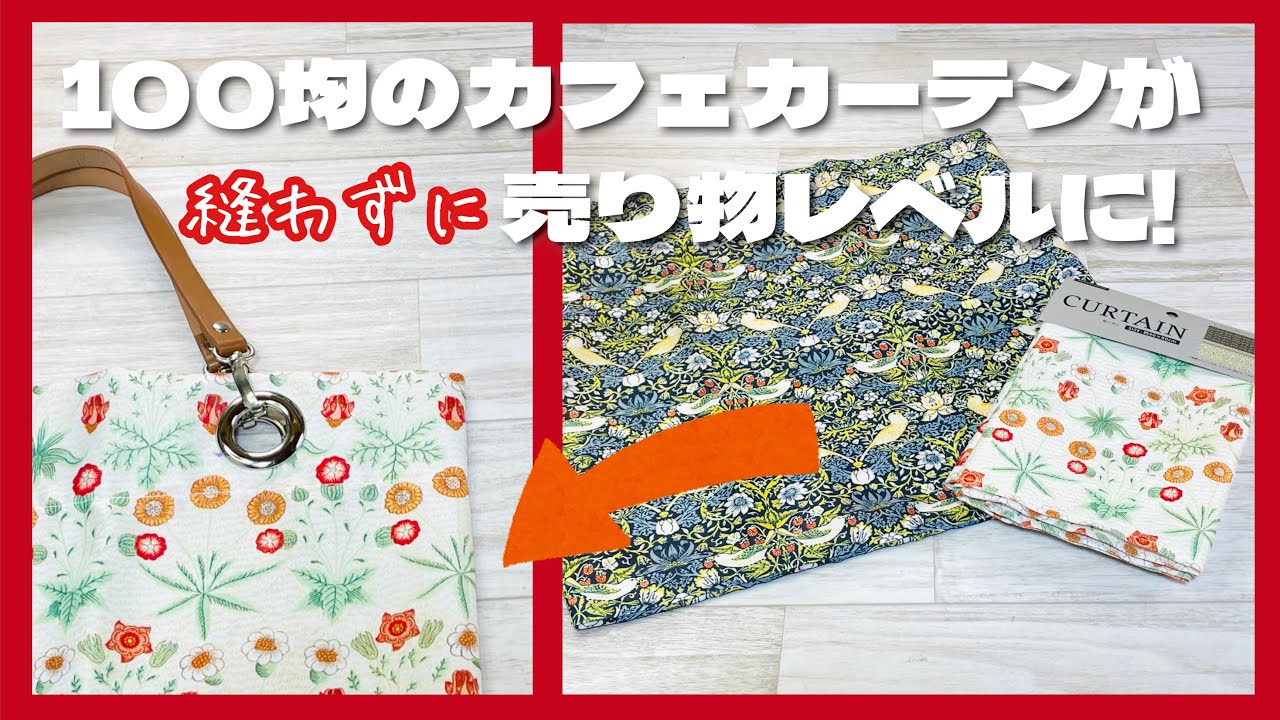 ミシンも工具も不要 Seriaのカフェカーテンがあっという間に売り物レベルのトートバッグに大変身! How to make a tote bagwith cafe curtains no sew。
