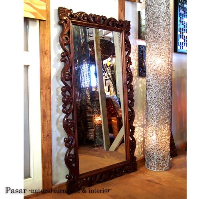 イタリー製バロック様式 木製 大きな鏡 立て掛けミラー 63644 アンティーク家具 ウェブサイト商品一覧。