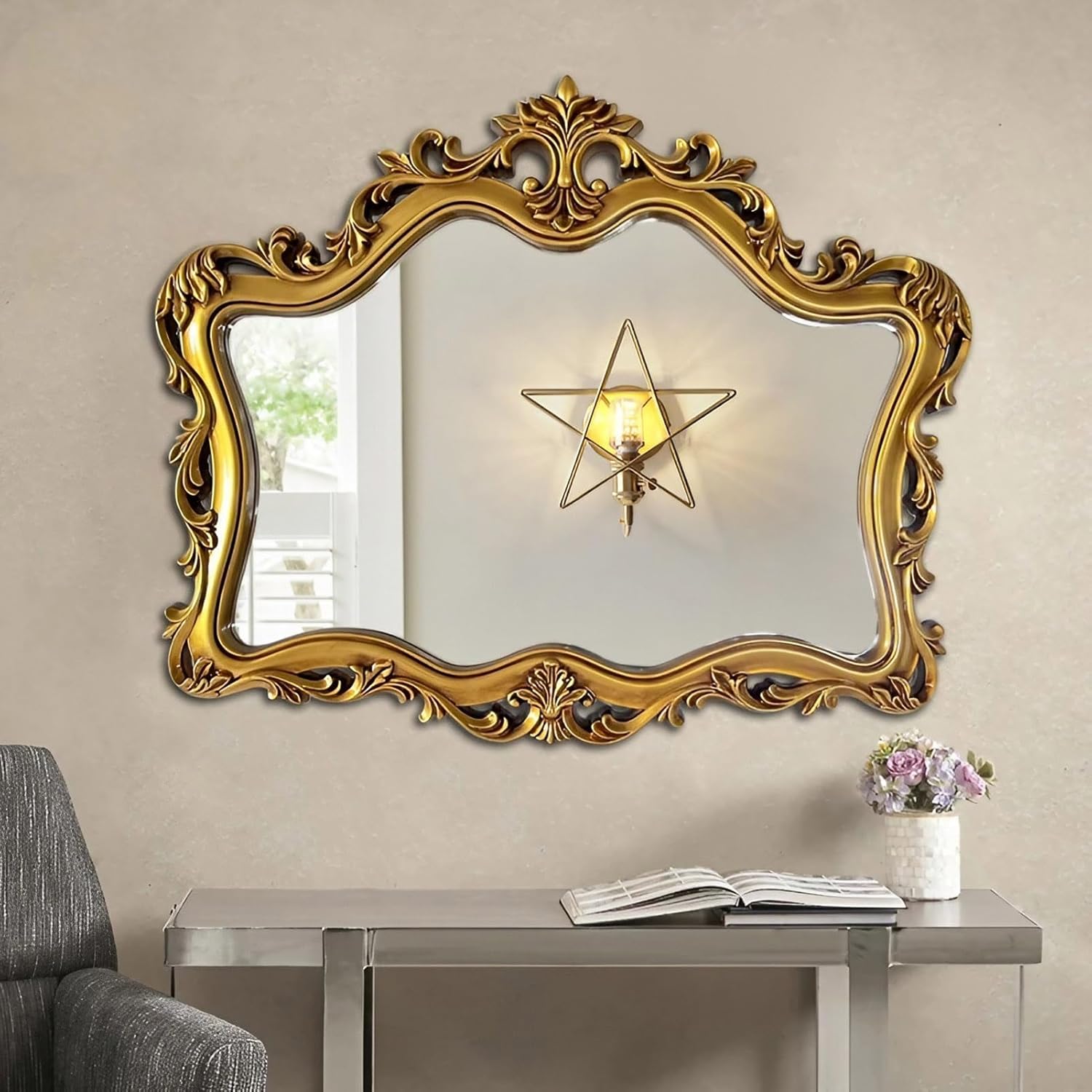 Amazon.co.jp: 鏡 装飾壁ミラー アンティーク調 ミラー 化粧鏡 大きな鏡 アンティークゴールド120cm×70cm・100cm×70cmエレガンス・レリーフヴィンテージ家具鏡 ホーム装飾 リビングルーム バスルーム 寝室 廊下用Color : GoldA, Size : 70x100cm 27.5x39.4in。