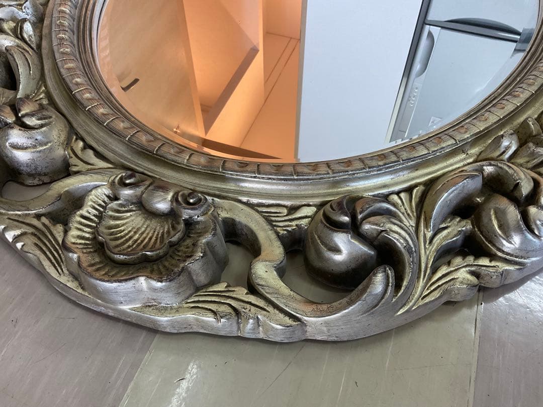 アンティーク調 壁鏡 大型アンティークミラー 壁掛け鏡 アンティーク調、立体装飾が美しい大型。