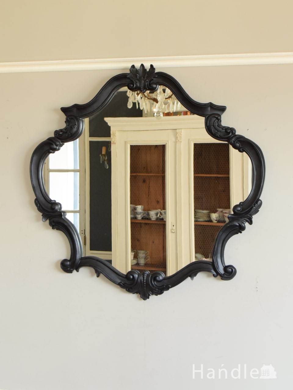 黒いフレームの大きなアンティークミラー - Kio。