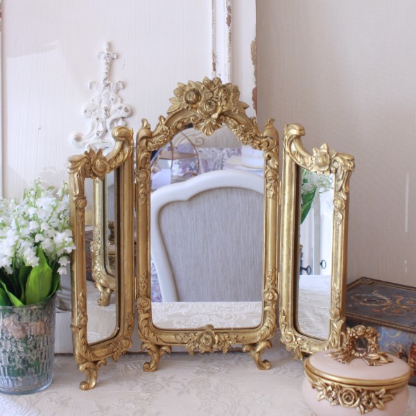 鏡 ミラー アンティーク インテリア小物 雑貨 レトロ くすみゴールド オシャレ 北欧 高級感 珍しい キレイ 女性 花 樹脂 卓上 デスク リビング- メルカリ。