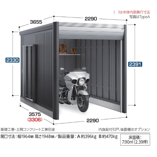 タクボ 物置 Mr.シャッターマン ダンディ WS-Z1829L 一般型 結露減少屋根 追加棟・単品販売不可 床なしシャッター式バイクガレージ基礎・土間工事必須間口x奥行x高さ 1832x2990x2570mmオシャレ TAKUBO 田窪工業所 収納庫 バイク 自転車 車庫。