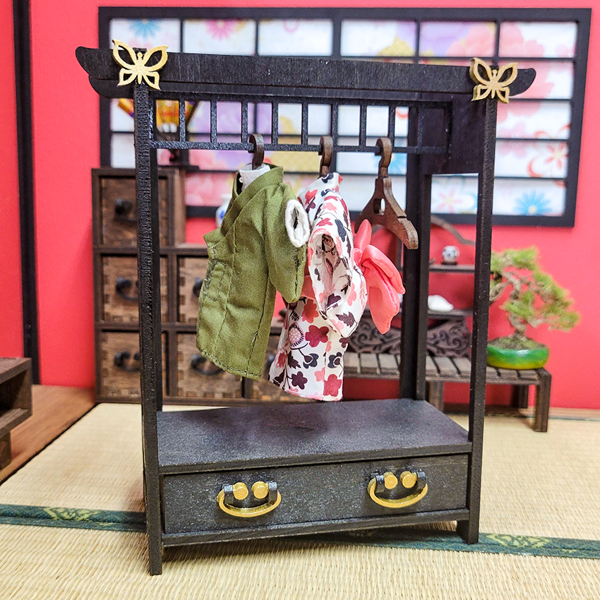 ミニチュア 1 6スケール 木製ハンガーラック 全2色DIY Miniature hangar rack:100均。