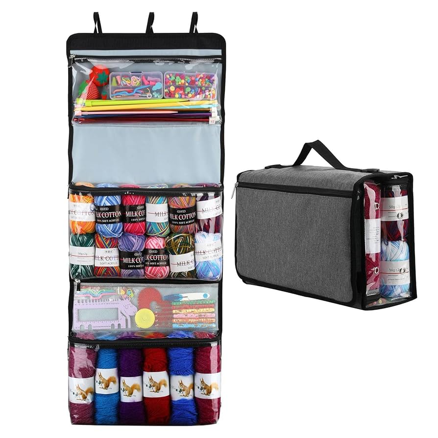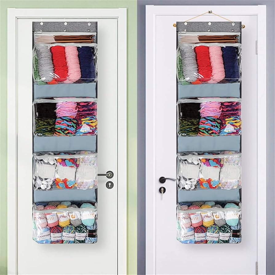 Amazon.co.jp: 毛糸編み物収納庫を吊るす4つのコンパートメントドア収納オーガナイザー上のウォールマウント - 化粧品、文房具、雑貨を 収納するための透明な窓とポケット Yeck : ホビ。