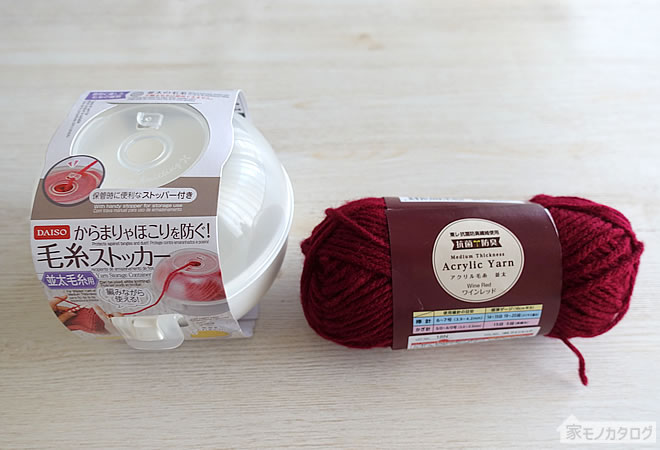 100均ダイソーで売っている毛糸収納ストッカー。絡まり防止や保管におすすめ。