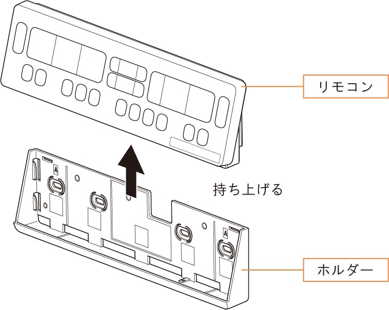 オプションのリモコン取付プレート TCA37-1 が取り付けられるリモコン。