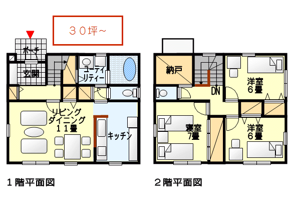 2階建て・南玄関 30坪台の間取り実例5選ポイントも解説 - リブタイムズ戸建てを考える方のためのフリーマガジン。
