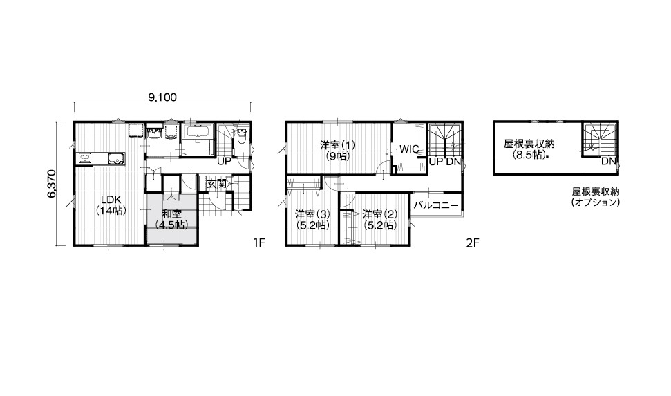 注文住宅 間取りプラン 30坪 収納室のある総二階の家栃木県宇都宮市の工務店 薄井工務店。