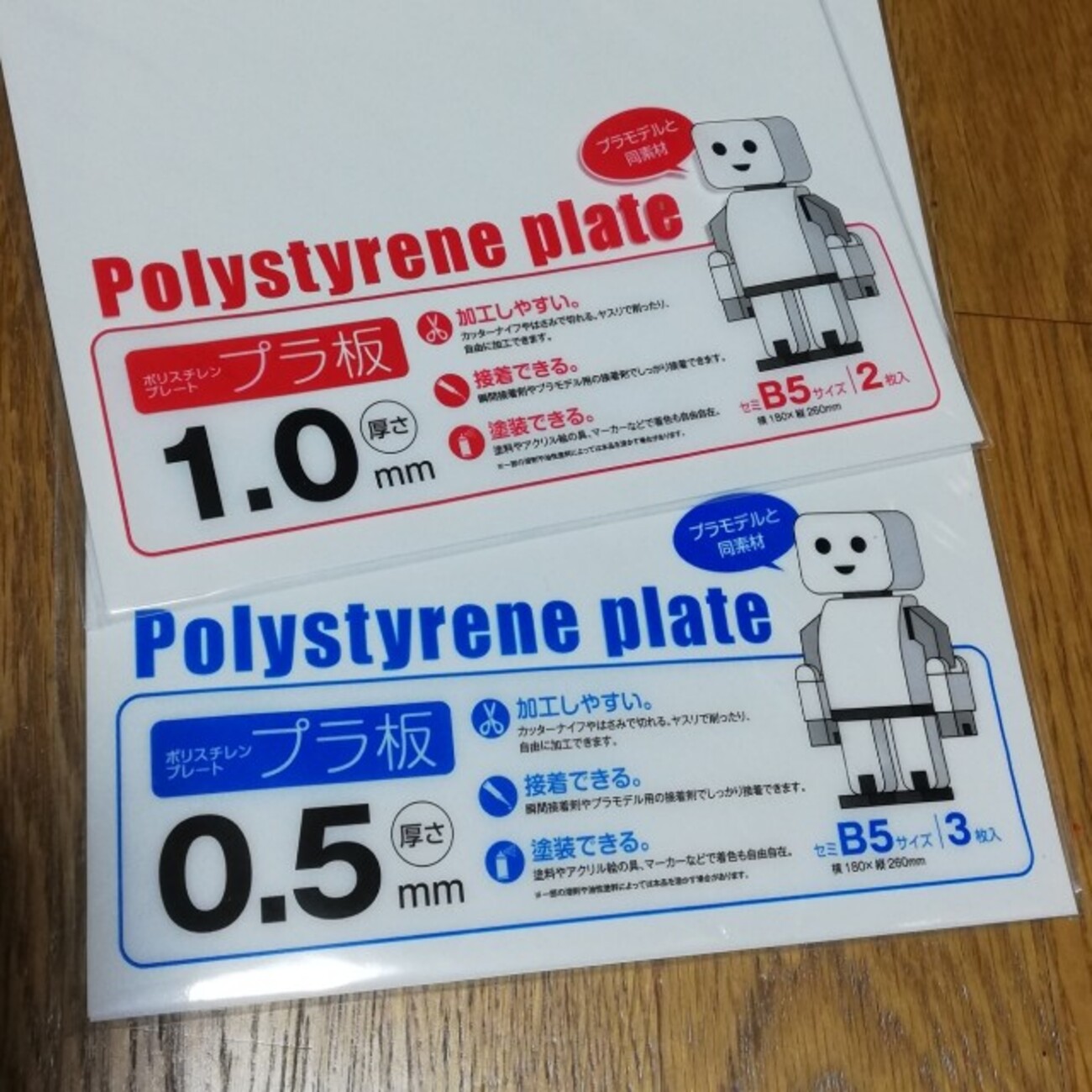 ミニもの ミニチュア製作on X: "セリアでの購入品。0.5mm厚プラ板 3枚入 と1mm厚プラ板 2枚入 。100均のプラ板 はOPS 二軸延伸ポリスチレン が多いですが、これはPS ポリスチレン 製の加熱しても縮まない工作用のプラバン。タミヤのプラ板に近い質感です。模型。