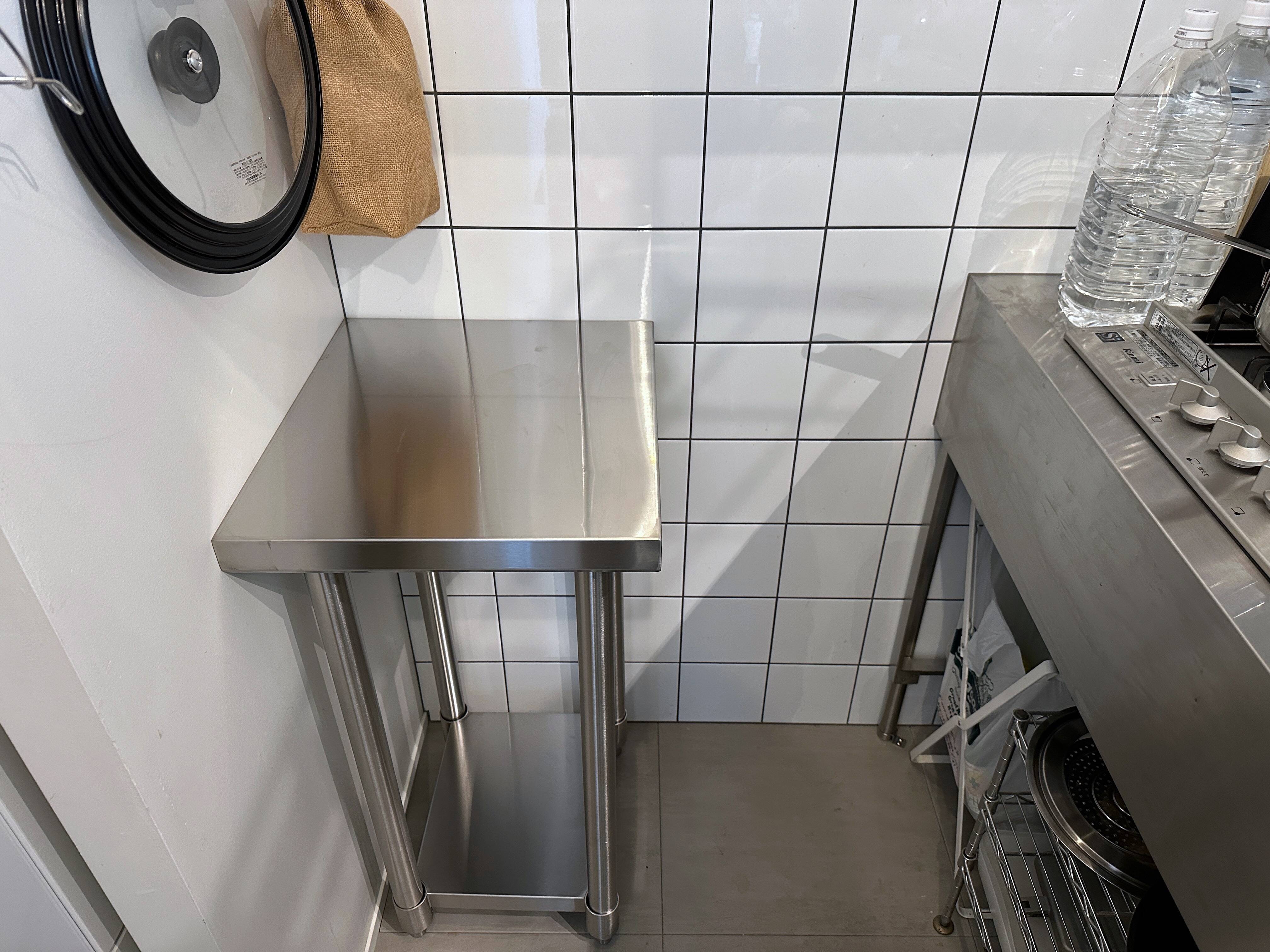 ステンレスの作業台でおしゃれに!キッチン収納も兼ねる便利家具を発見yokoyumyumのリノベブログ。
