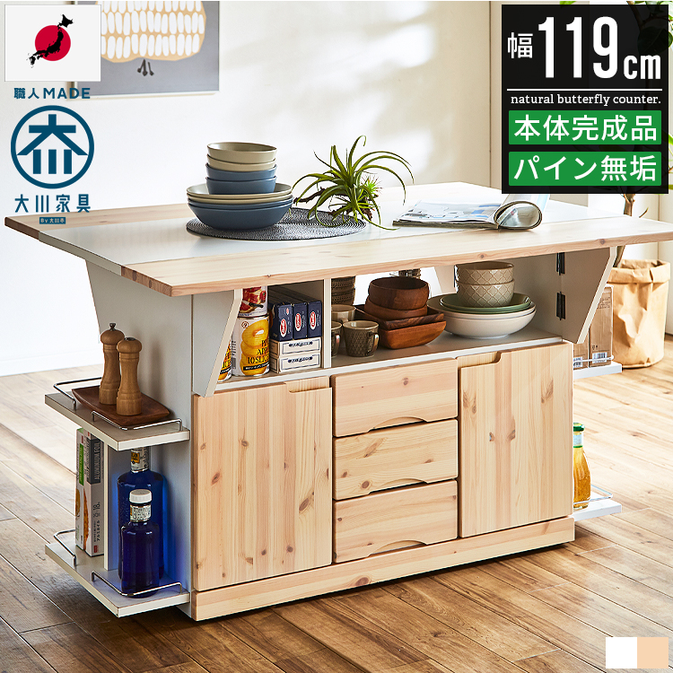幅120 奥行65 高さ85 サイズ変更可能 サンセットアイランドキッチンカウンター作業台大川家具ドットコム通販。