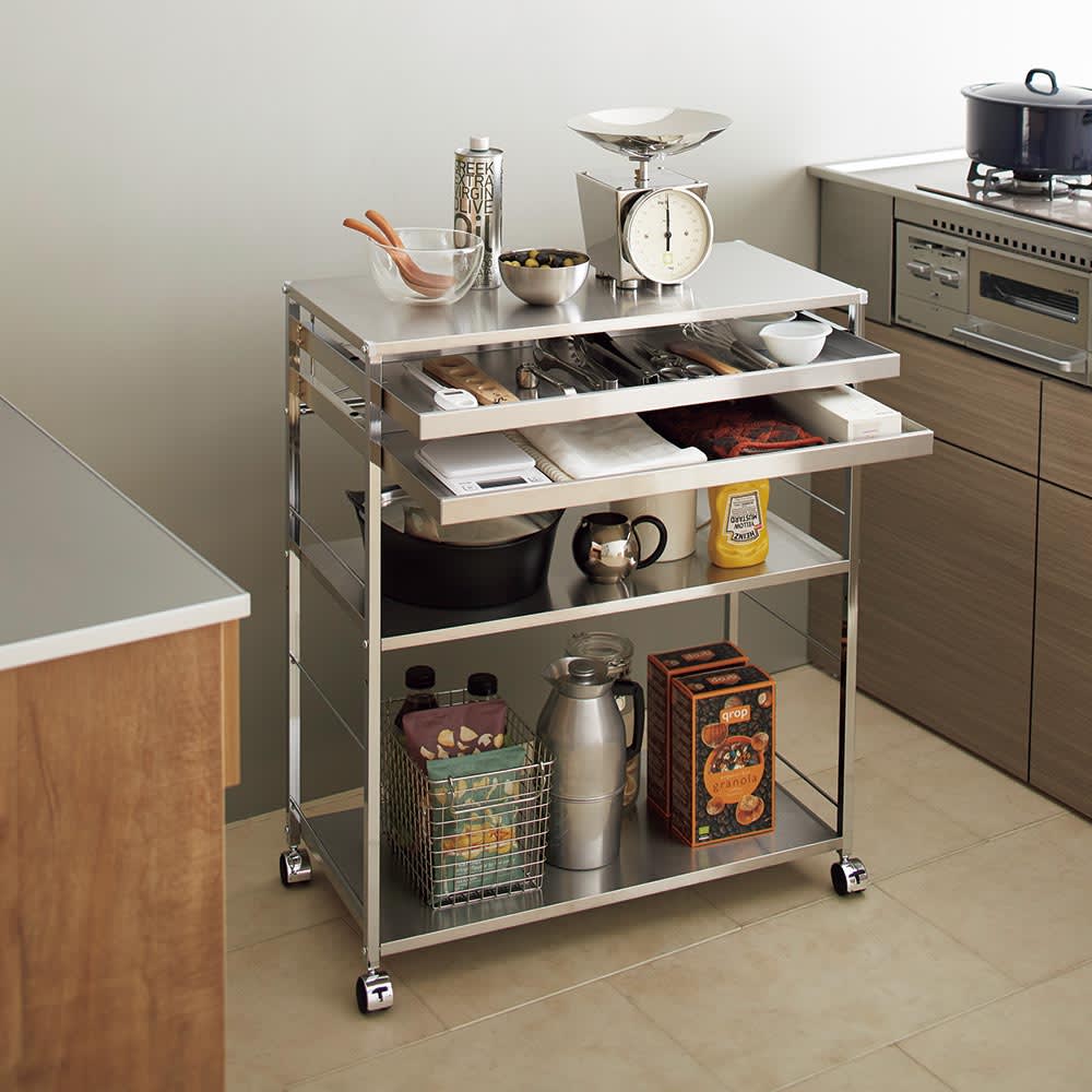 ステンレス作業台ワゴン 引き出し2杯タイプ 幅73.5cm 通販 - ディノス。