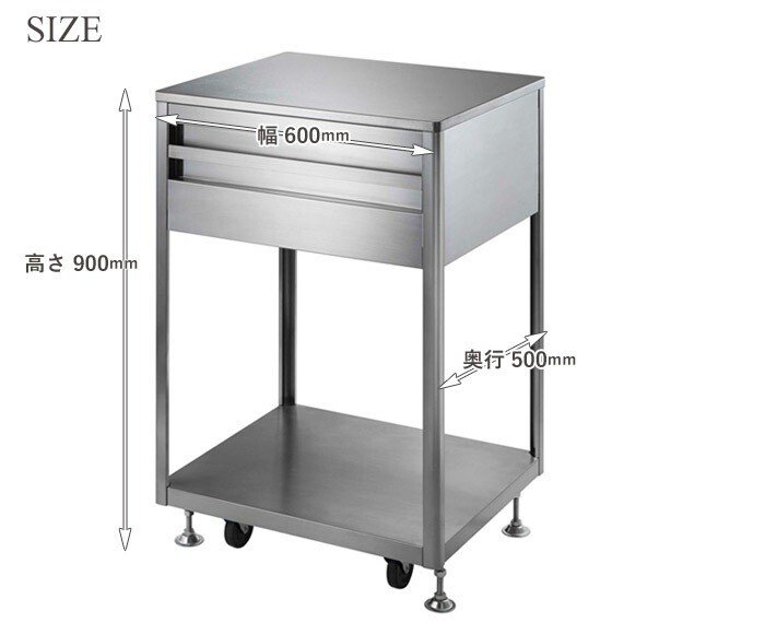 ステンレス作業台ワゴン 引き出し1杯タイプ 幅50cm 通販 - ディノス。