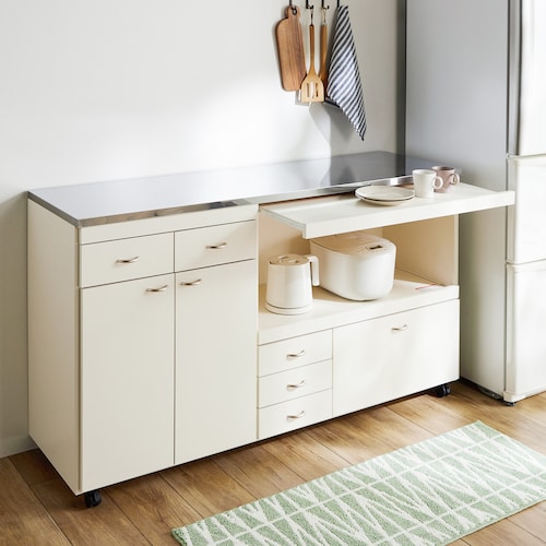 カウンター 幅120 120 キッチンカウンター ステンレス天板 完成品 レンジ台 レンジ台付き 食器棚 おしゃれ 北欧 作業台 キッチン 間仕切りリルケLINEブランドカタログ。