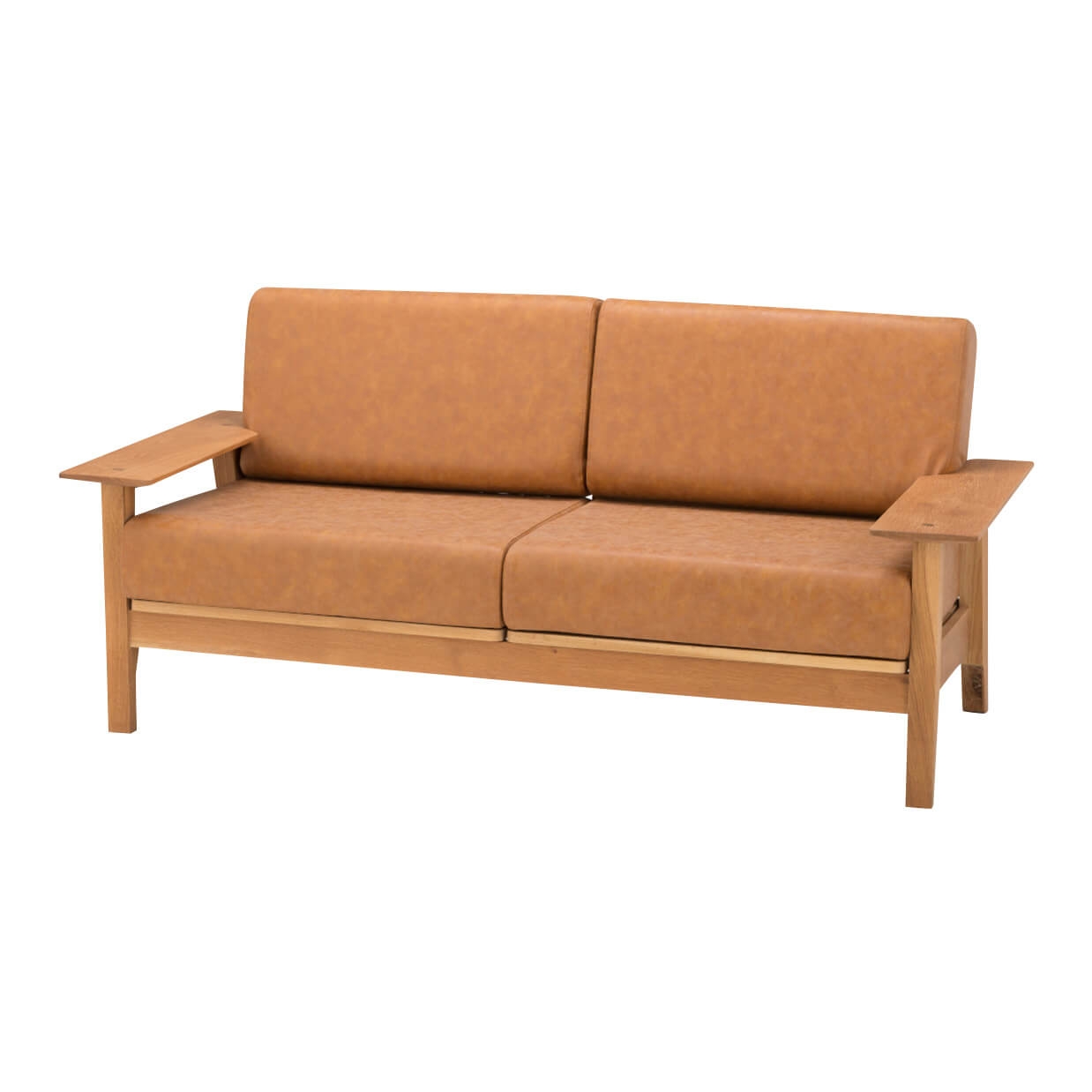 温もりと美しさを感じる木肌の無垢材フレーム&レザー張り地の高級木肘ソファ 2人掛けサイズSugure Interior送料無料・業界最安値。