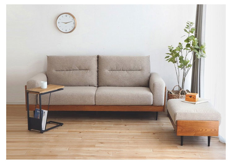 木製フレームファブリックソファ3人掛け&テーブルオットマン Enola の激安通販は ベッド通販.com にお任せ。