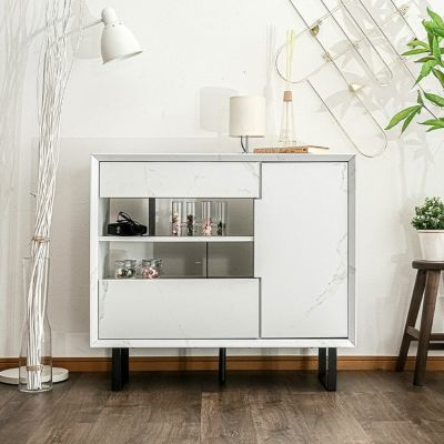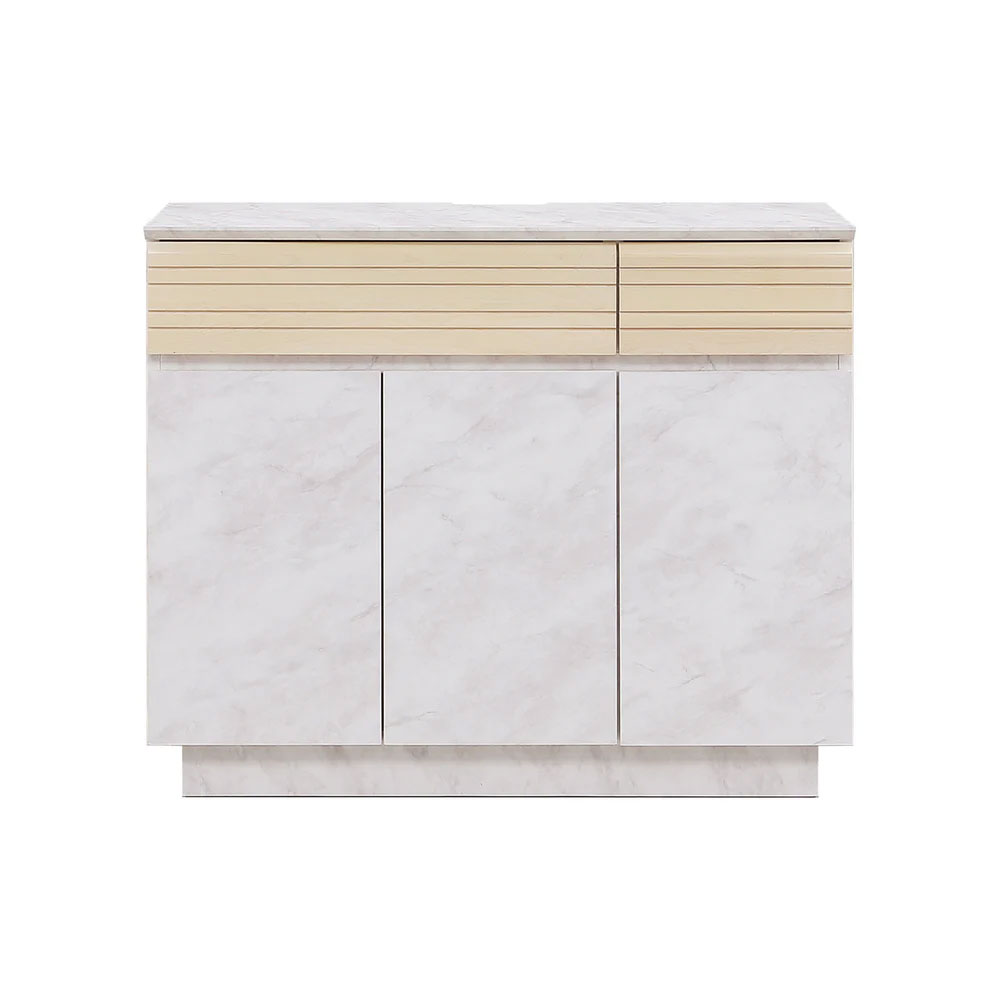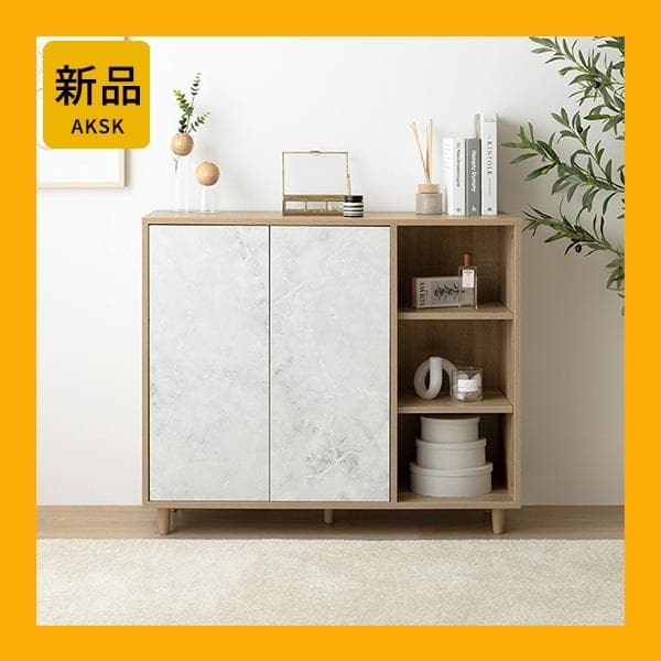 設置無料 幅120cm サイドボード 大理石調 収納 引き出し 開き扉 脚付き ラック リビングボード リビング収納 間仕切り キャビネット おしゃれモダン 白 ホワイト グレー ルンバブル暮らしのデザイン。
