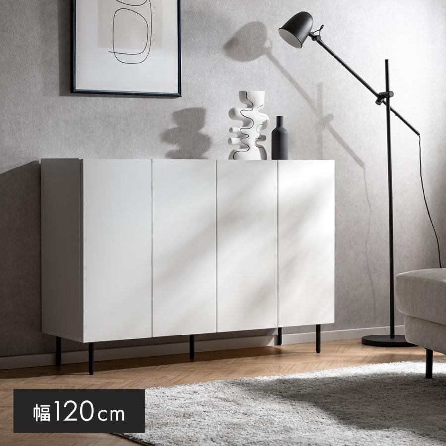 キャビネット サイドボード 120 リビング 収納 リビングボード 収納棚 収納家具 白 おしゃれ リビングキャビネット。