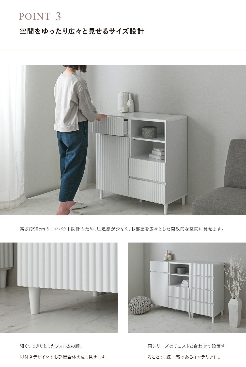 キャビネット 白 おしゃれ 韓国 北欧 木製 幅90 収納 リビングボード 引き出し リビング収納 チェスト デザイン シンプル 大容量 コード穴ホワイト リビング 棚 <alan ALN90-90C> - 通販家具とインテリアの通販 RoomClipショッピング。