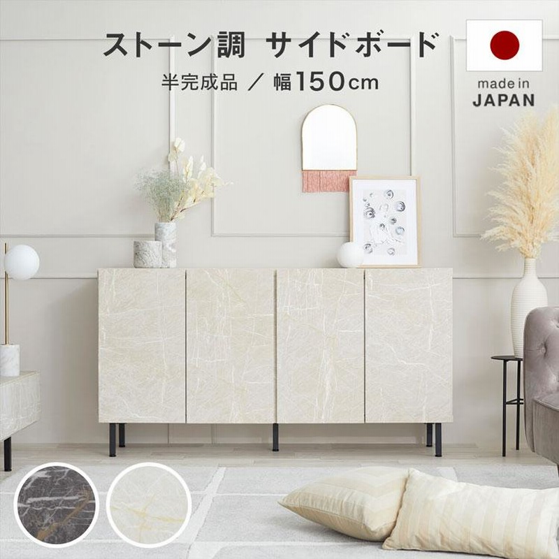 サイドボード おしゃれ 150 リビング 収納 白 黒 キャビネット 国産 脚付 木製 石柄 ストーン風LINEブランドカタログ。