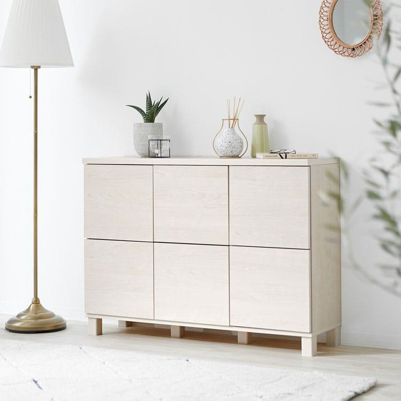 サイドボード キャビネット 白家具 ナチュラル 木製 木目調 収納棚 チェスト リビング収納 ディスプレイラック。