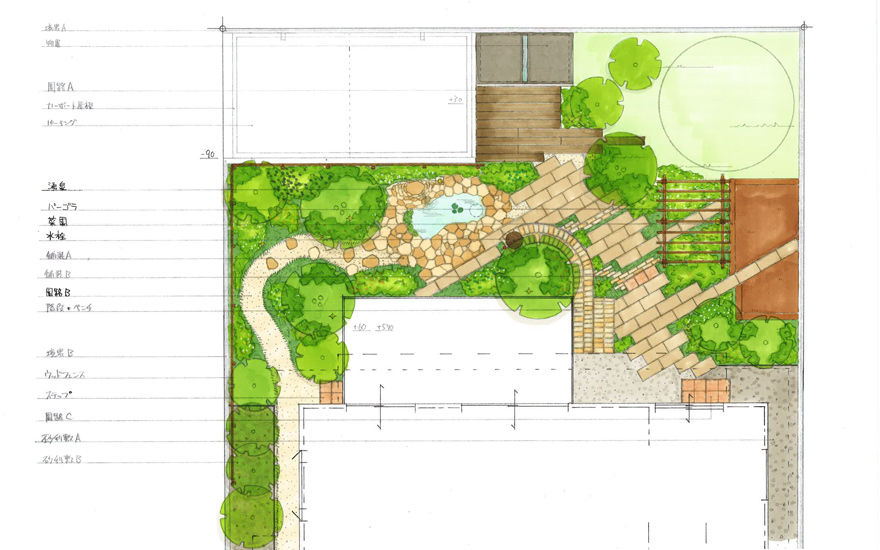 ご提案図面 「季節が歌う場所」外構計画図京都・滋賀ガーデンルームとお庭の専門店ラフテル。