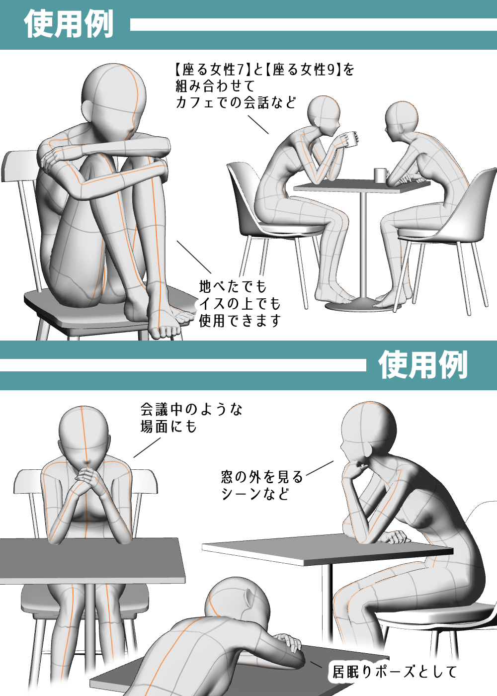 女性ポーズ集 座るポーズ編2 - CLIP STUDIO ASSETS。