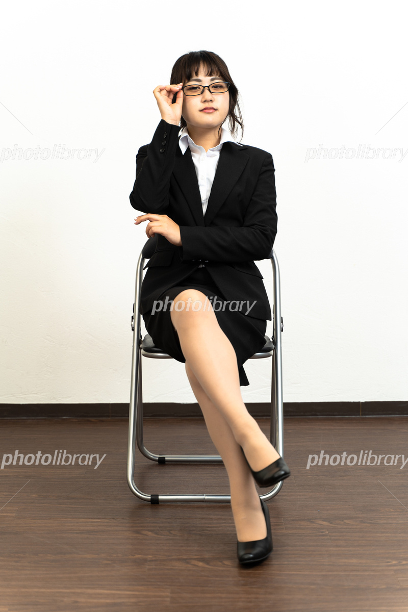 めがねをかけて椅子に座る女性 写真素材6288219- フォトライブラリ。
