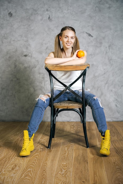 椅子に腰を掛ける女性のポートレート 33000002924 の写真・イラスト素材アマナイメージズ。