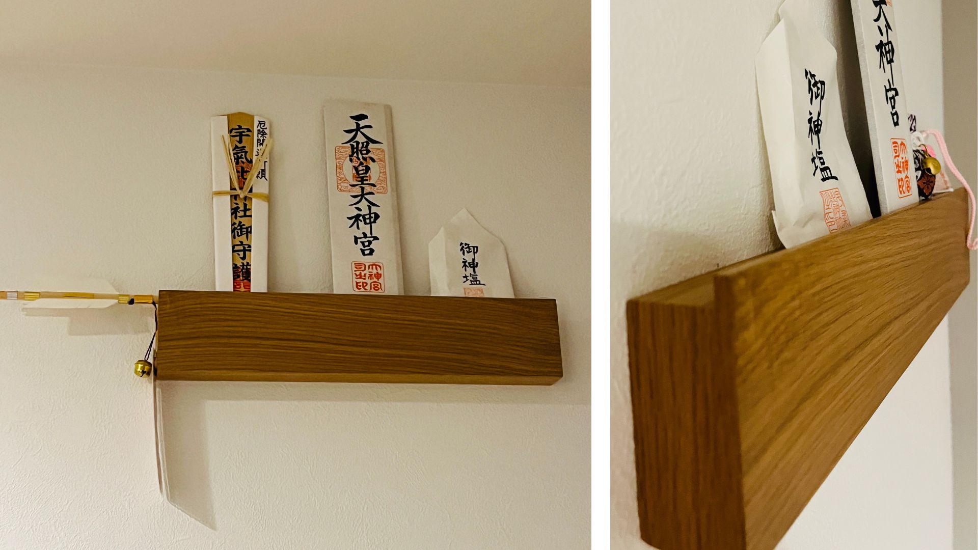 無印良品 「壁に付けられる家具・長押・幅44cm・オーク材」 が御札を祀るのに便利!!@SELF。