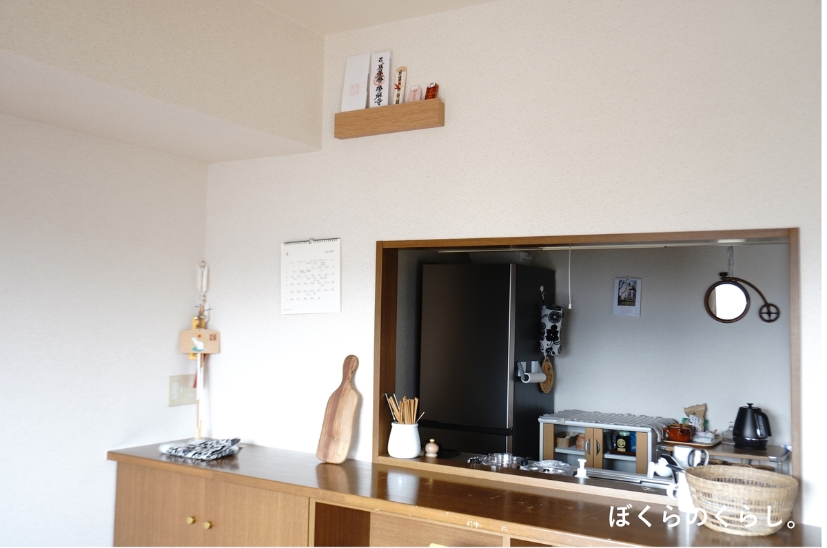 住まいとインテリアマンションでも簡易神棚。無印の長押がぴったりでした。 - ぼくらのくらし。