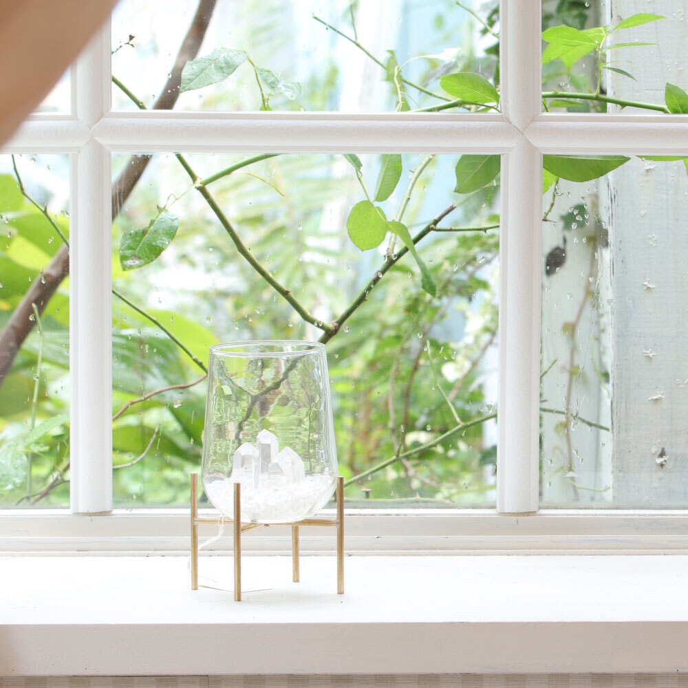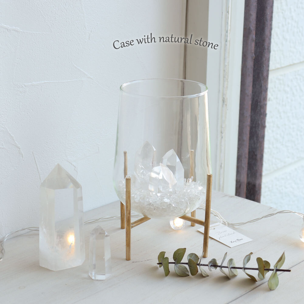 磨き水晶☆3本 リサイクルガラス 真鍮スタンド アンティーク風 ディスプレイ ヒマラヤクリスタル さざれ石 パワーストーン 癒し 6点セット インテリア高級感 おしゃれ オブジェ 置物 原石 開運 厄除け 浄化 空間 玄関用 寝室用 リビング用 部屋用 母の日 花以外 ご褒美。