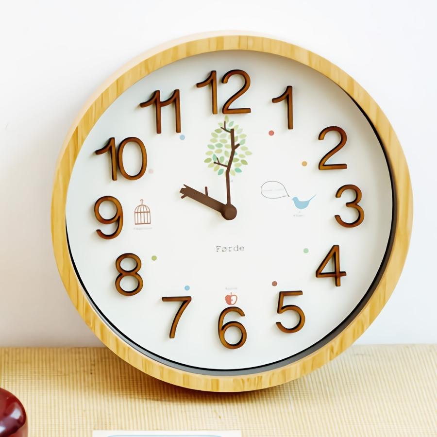 電波掛け時計 かわいい 子供部屋 木 枝 小鳥 鳥かご。
