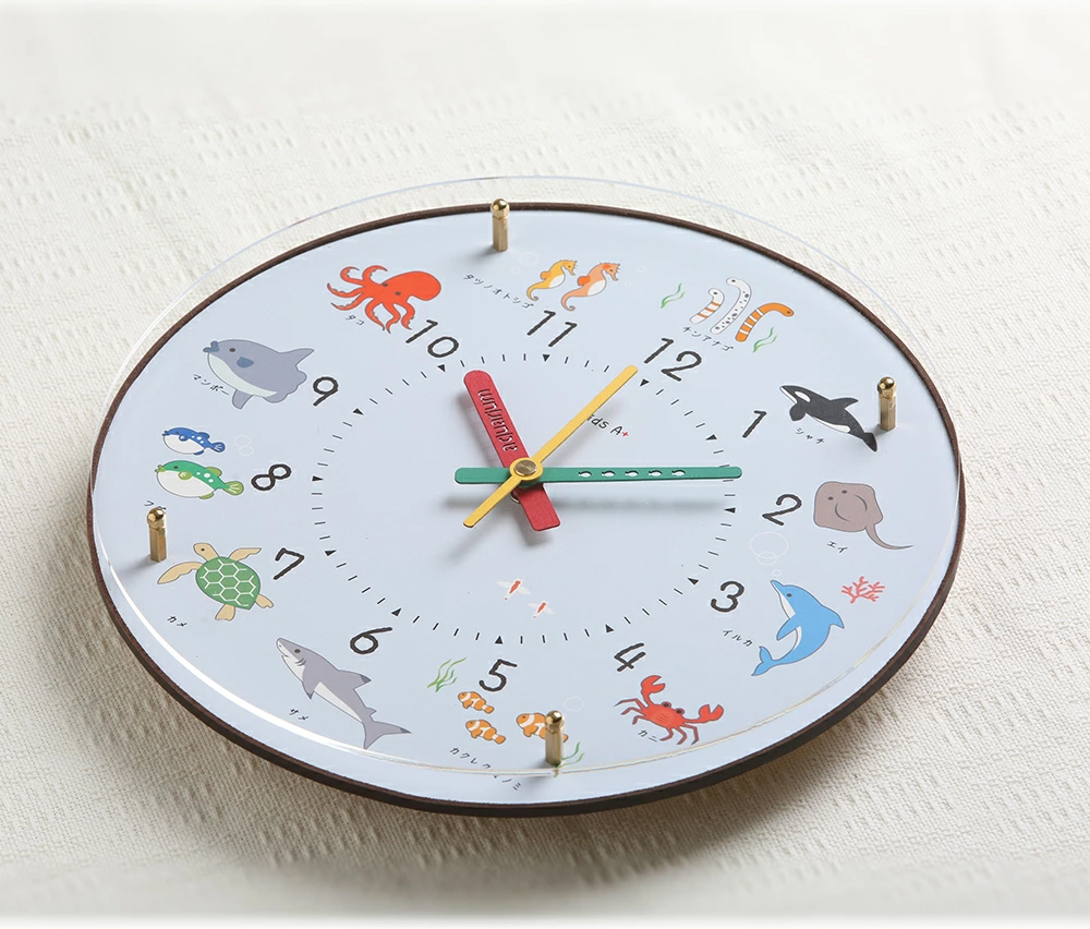 掛け時計 コドモノシュミシリーズ 水族館 知育時計 壁掛け時計 30cm 日本製 かわいい おしゃれ 子供。