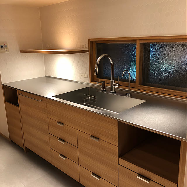 久しぶりに 収納の写真🗃 子供の手の届かない場所にお薬を収納するため、吊り戸棚も採用しました𓂃▷踏み台なしでも上の段まで使えるよう低めの位置に🪜 ▷圧迫感を軽減させるべく上には窓を🪟 お菓子作りが好きなのでグッズ多めでクッキー型などが他の場所にも ˎˊ。