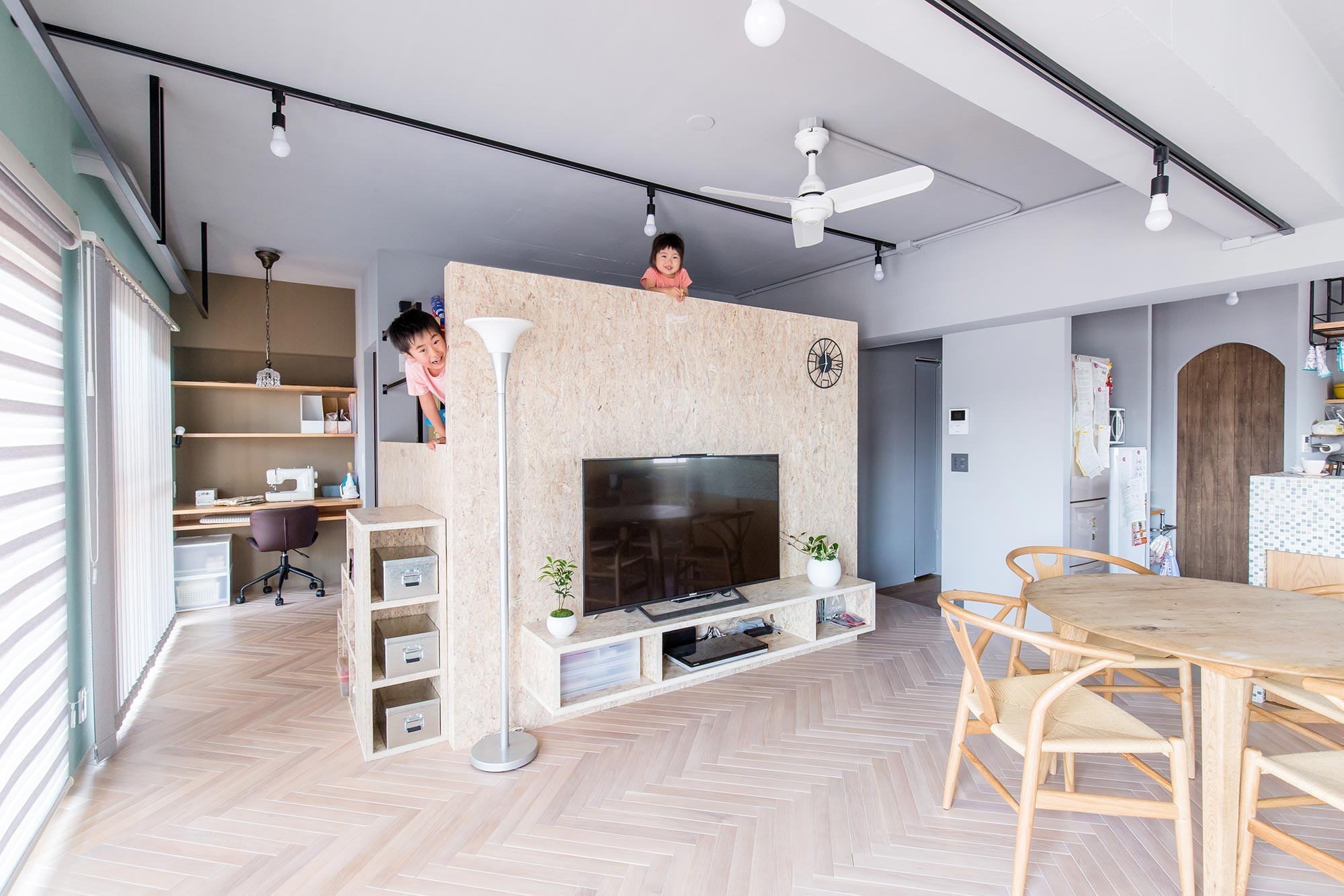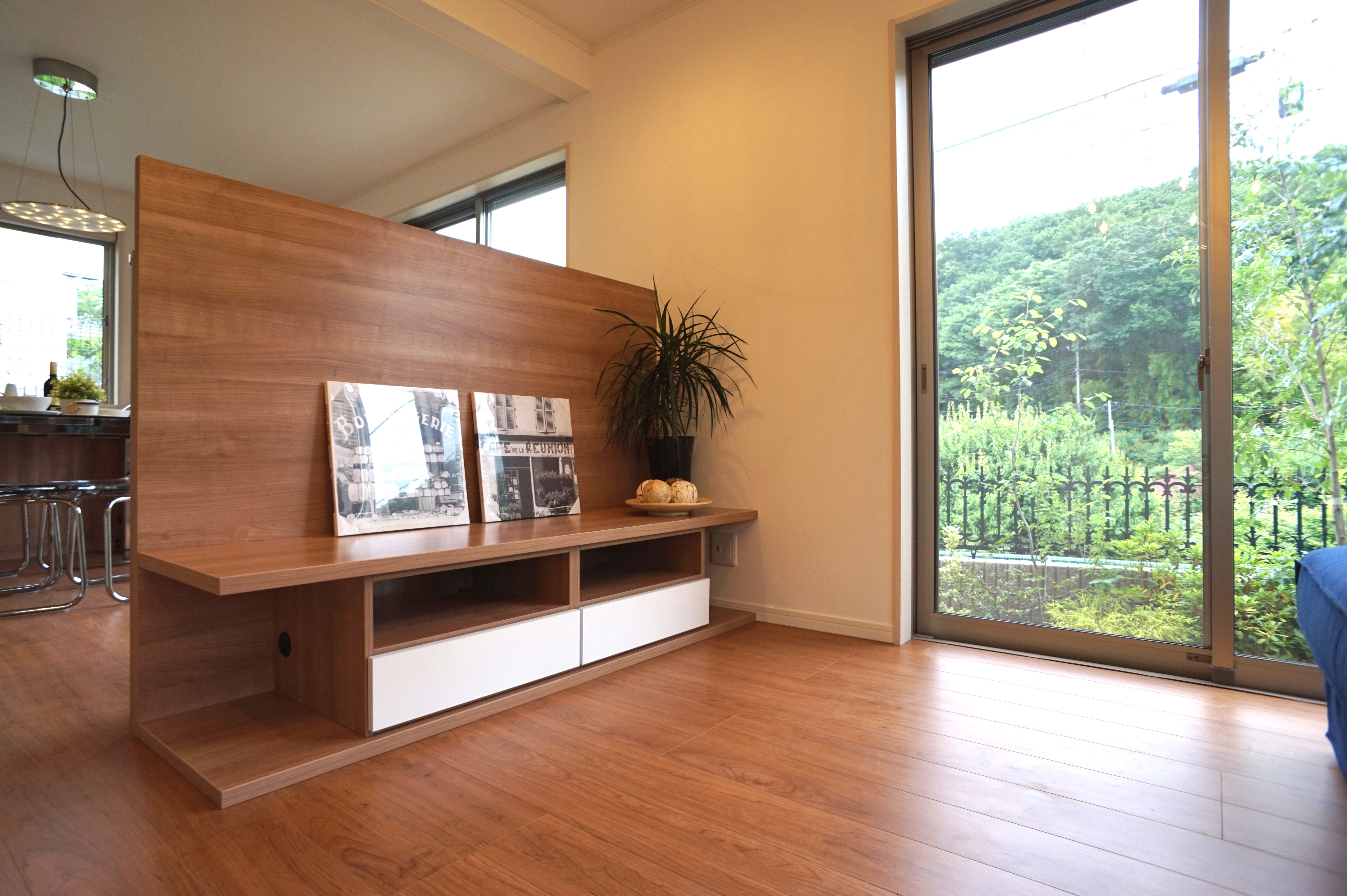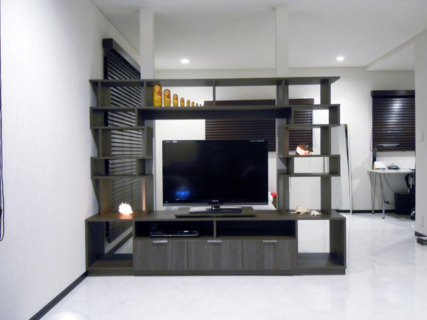 間仕切りを兼ねたテレビボード – 「ポッカポカ日和」 オーダー家具・住宅リフォームなら福岡のデザインコンパス。