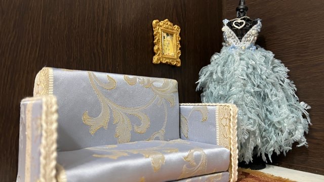 DIY ルーバー風仕切り壁に壁掛けテレビ。