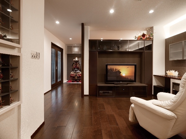 腰壁withテレビ台を家具で。 仕切り腰壁兼用TV台ワタシノ札幌の注文住宅 マルワホーム企画。
