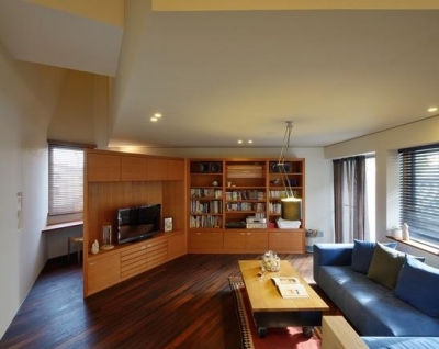 リビングと書斎を間仕切り、圧迫感にも配慮したL型テレビボード!-埼玉県の施工事例 オーダーテレビボード │オーダー家具専門店GNASH ナッシュ。