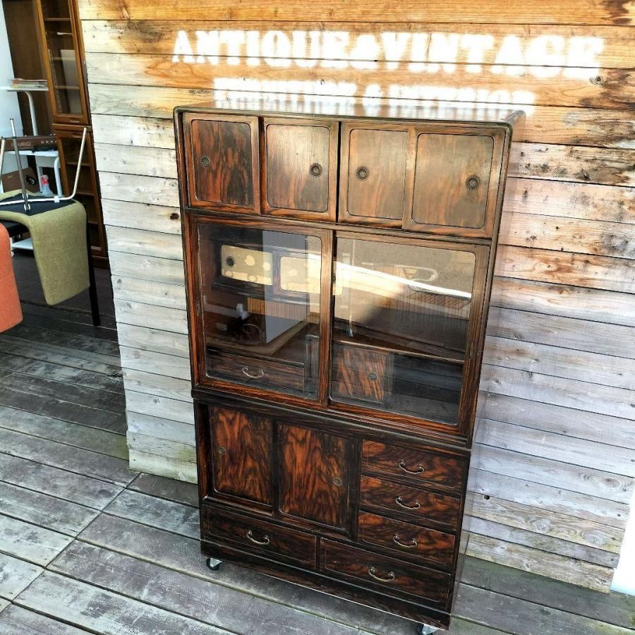 ☆昭和レトロ☆ 茶箪笥 モダン アンティーク モールガラス 型板ガラス 楽天市場1点物。