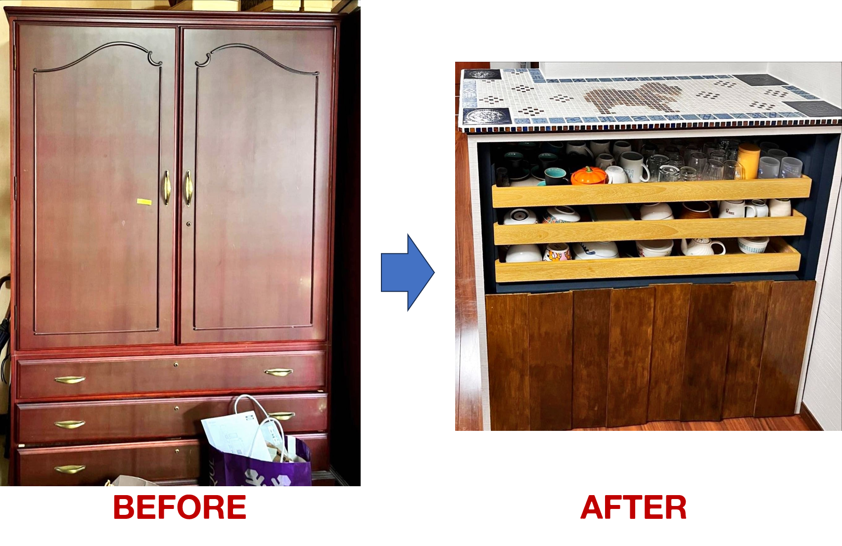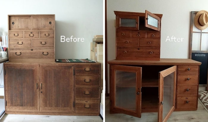 桐たんすをリメイクdiy 自分で洋風モダンな食器棚にする方法。