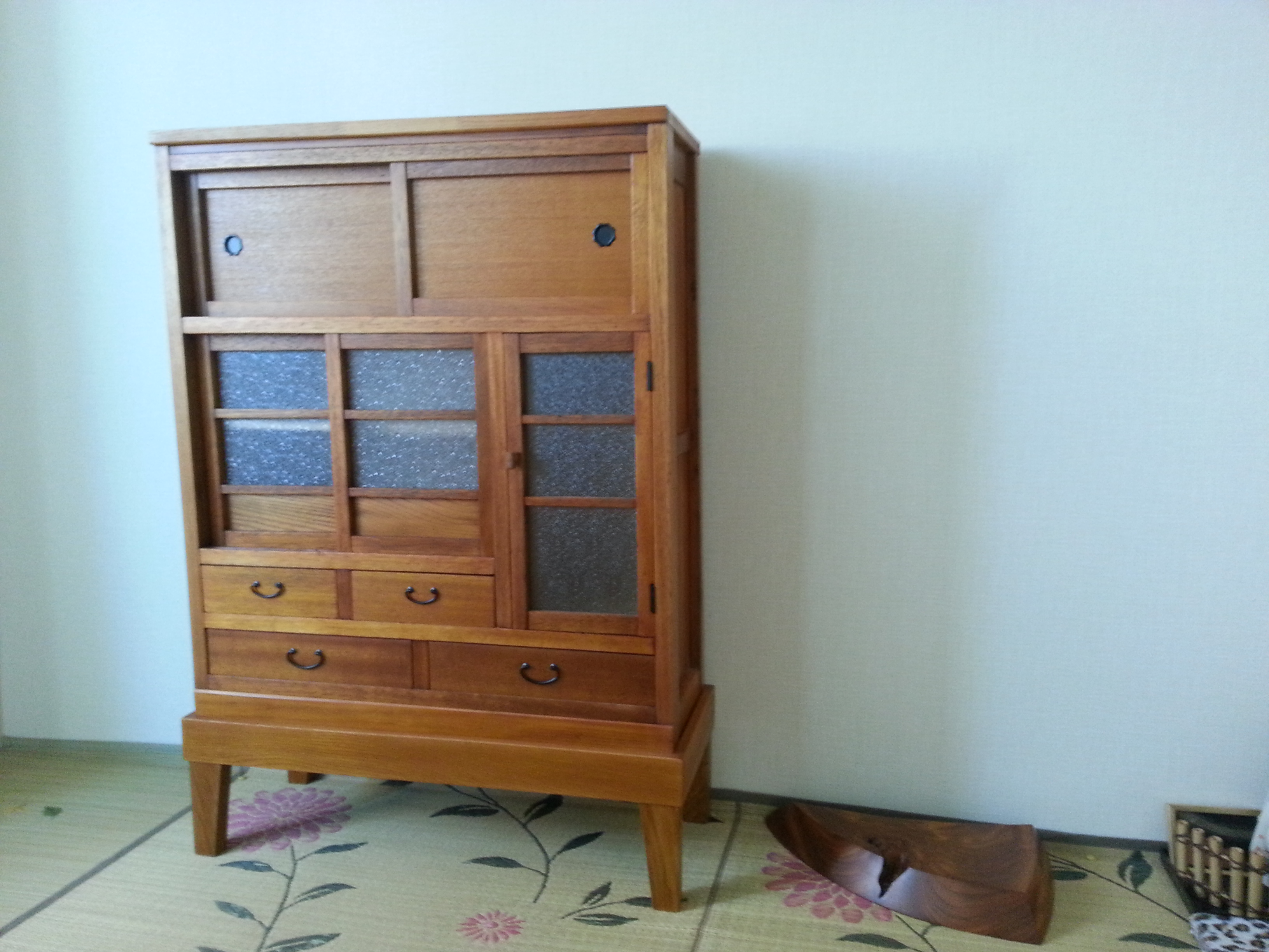 古い箪笥から食器棚とテレビボードへ森重生活用品店。