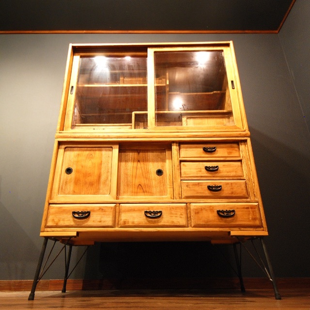 送料込み アンティーク レトロな茶箪笥 楽天市場1点物 和人 茶箪笥 リメイク ガラス。