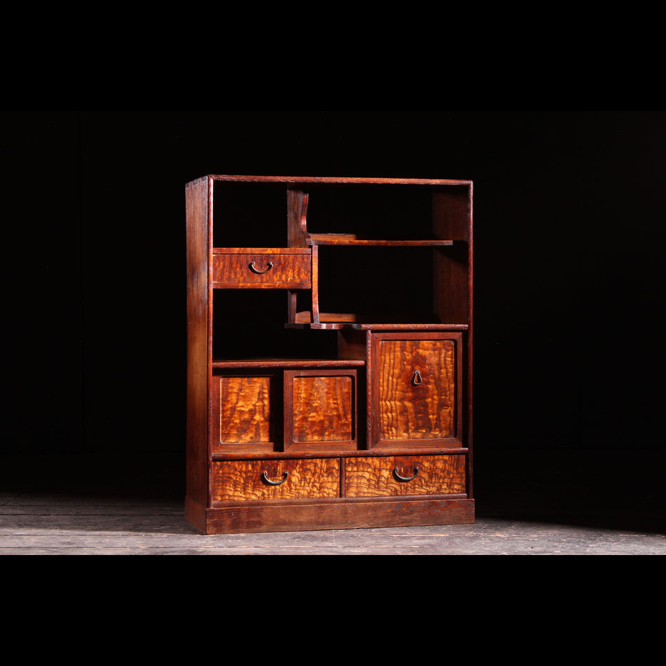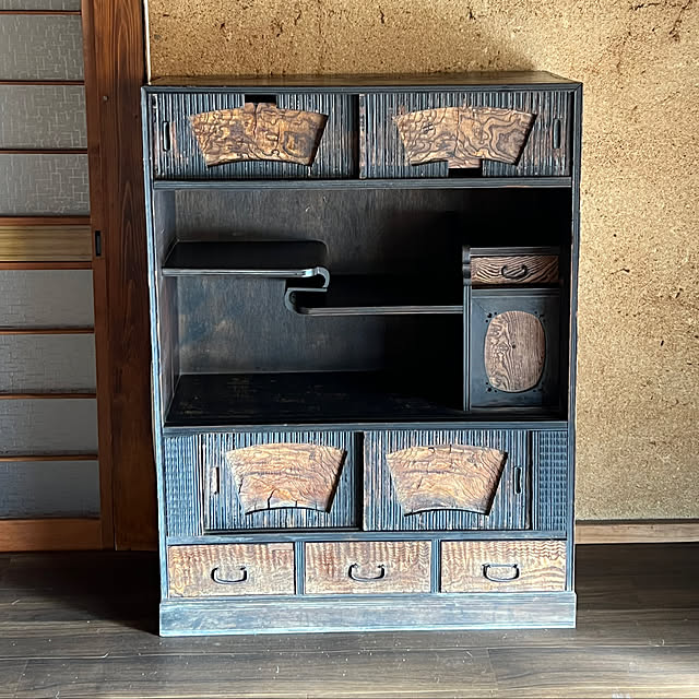 一点物杉無垢材シェルフ 古箪笥リメイク 和風飾り棚 茶箪笥 柿渋仕上げ。